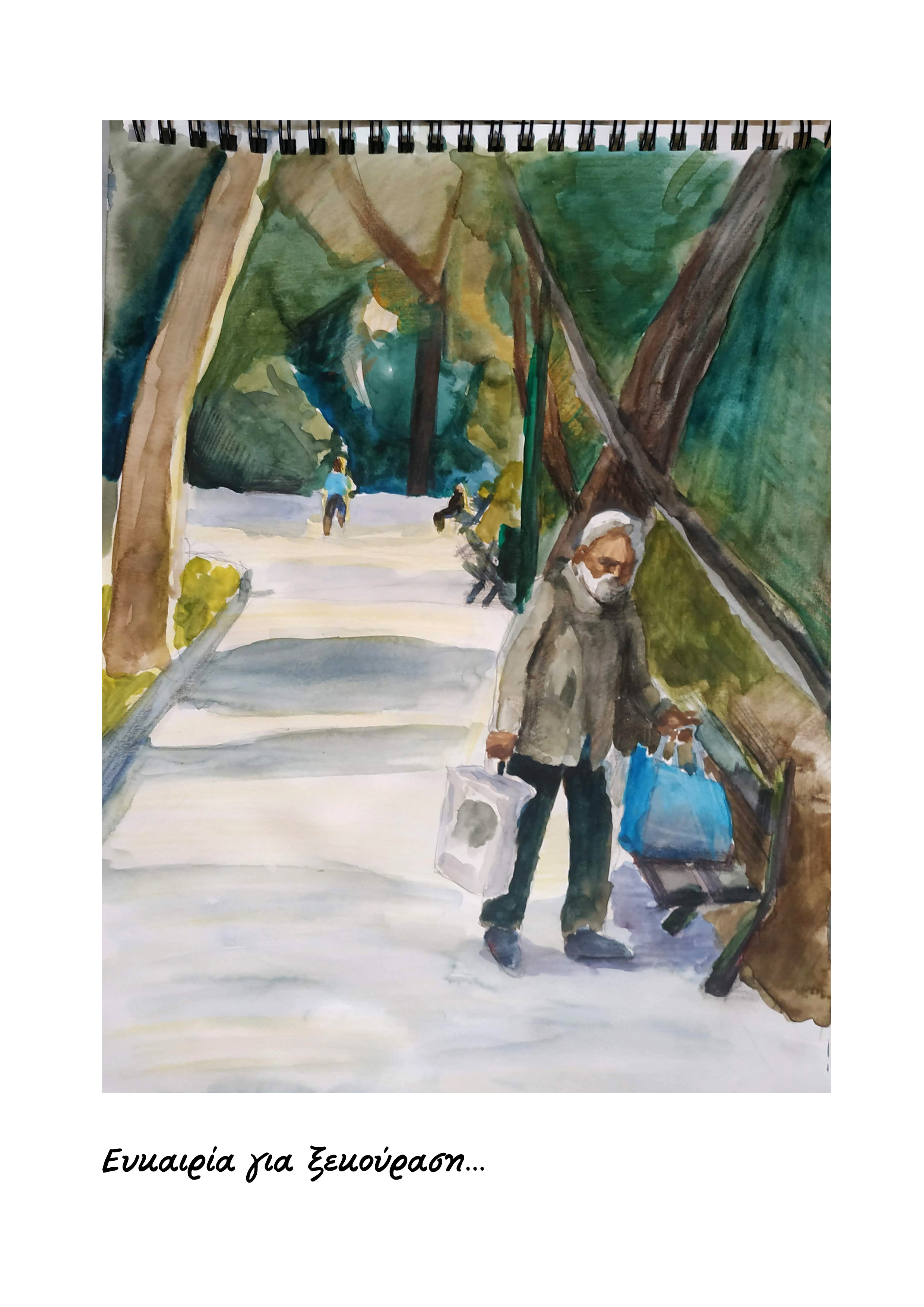 Οι κάτοικοι των μεγαλουπόλεων έχουμε χάσει σε μεγάλο βαθμό την επαφή μας με τη φύση. Υπάρχουν στιγμές που θα θέλαμε να βρισκόμασταν έξω, στο πράσινο, μακριά από τις τσιμεντένιες γκρίζες πόλεις που έχουμε συνηθίσει να κατοικούμε. Η αγάπη μου για τη φύση λοιπόν, με ώθησε να ασχοληθώ με το συγκεκριμένο project για το Άλσος Παγκρατίου σκιτσάροντας σκηνές μέσα από αυτό. Στο καταπράσινο αυτό άλσος μπορεί κανείς να συναντήσει ανθρώπους όλων των ηλικιών να κάνουν τη βόλτα τους, να κάθονται στα παγκάκια, ακόμα και να «κόβουν δρόμο» επιστρέφοντας από τα ψώνια τους ή πηγαίνοντας στις δουλειές τους. Πρόκειται για έναν από τους χώρους που μας δίνουν τη δυνατότητα να έρθουμε σε επαφή με την φύση και όλοι όσοι έχουν βρεθεί μέσα στο άλσος σίγουρα έχουν αισθανθεί αυτή την ηρεμία που προκαλεί το πράσινο του φυσικού τοπίου. Την ηρεμία που σε όλους μας λείπει και συχνά αποζητούμε εξαιτίας των γρήγορων ρυθμών ζωής της πόλης.